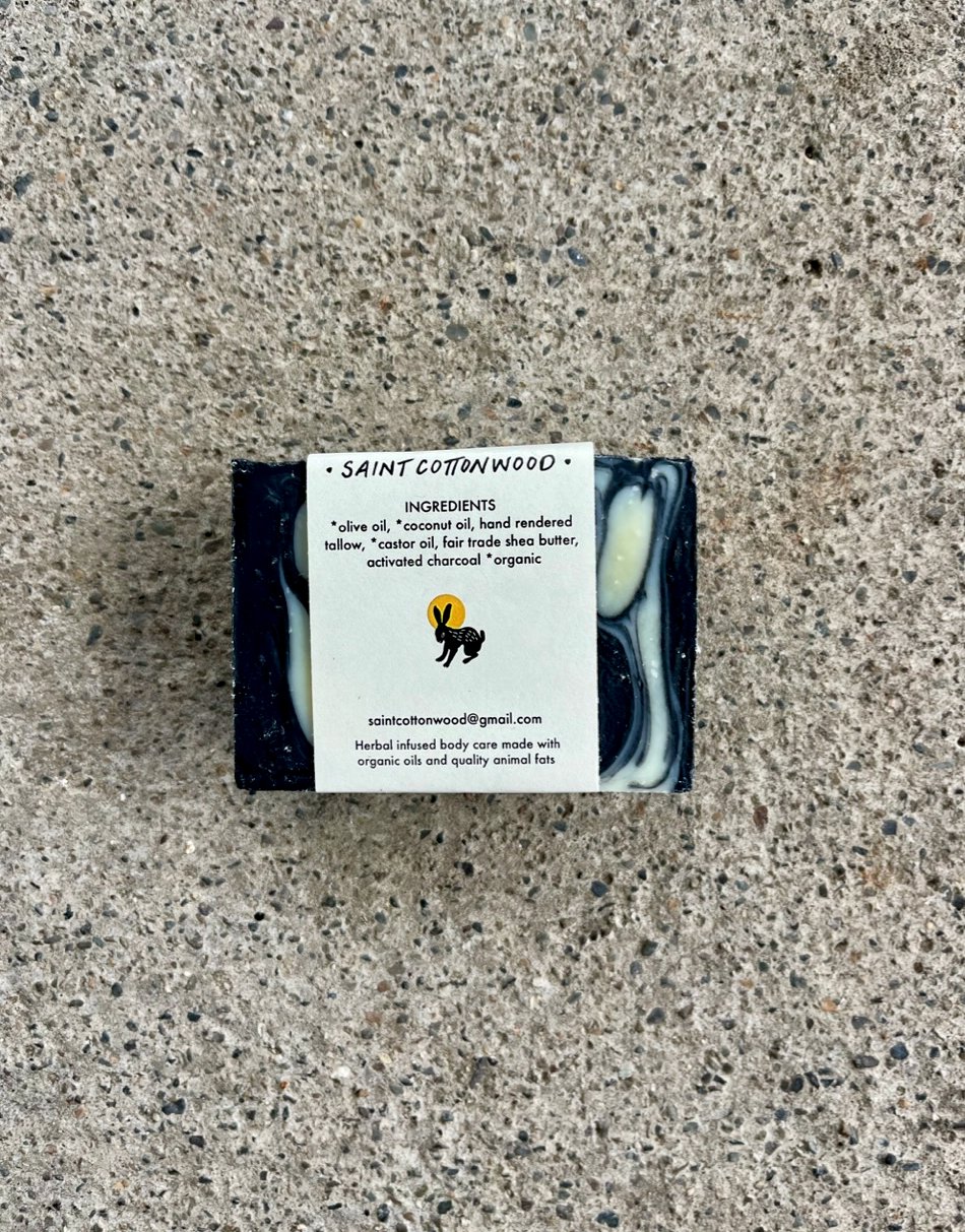 Activated Charcoal helps to draw out toxins and cleanses the skin. This bar helps to absorb carbon based toxins while a blend of organic oils and local animal fats nurture the skin.