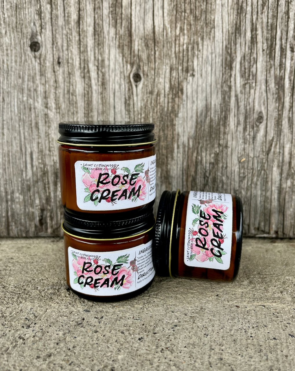 Ingredients - *jojoba oil, *rose hip seed oil, *olive oil, fair trade shea butter, emulsifying wax, rose petal hydrosol, rose hip hydrosol, leucidal liquid.