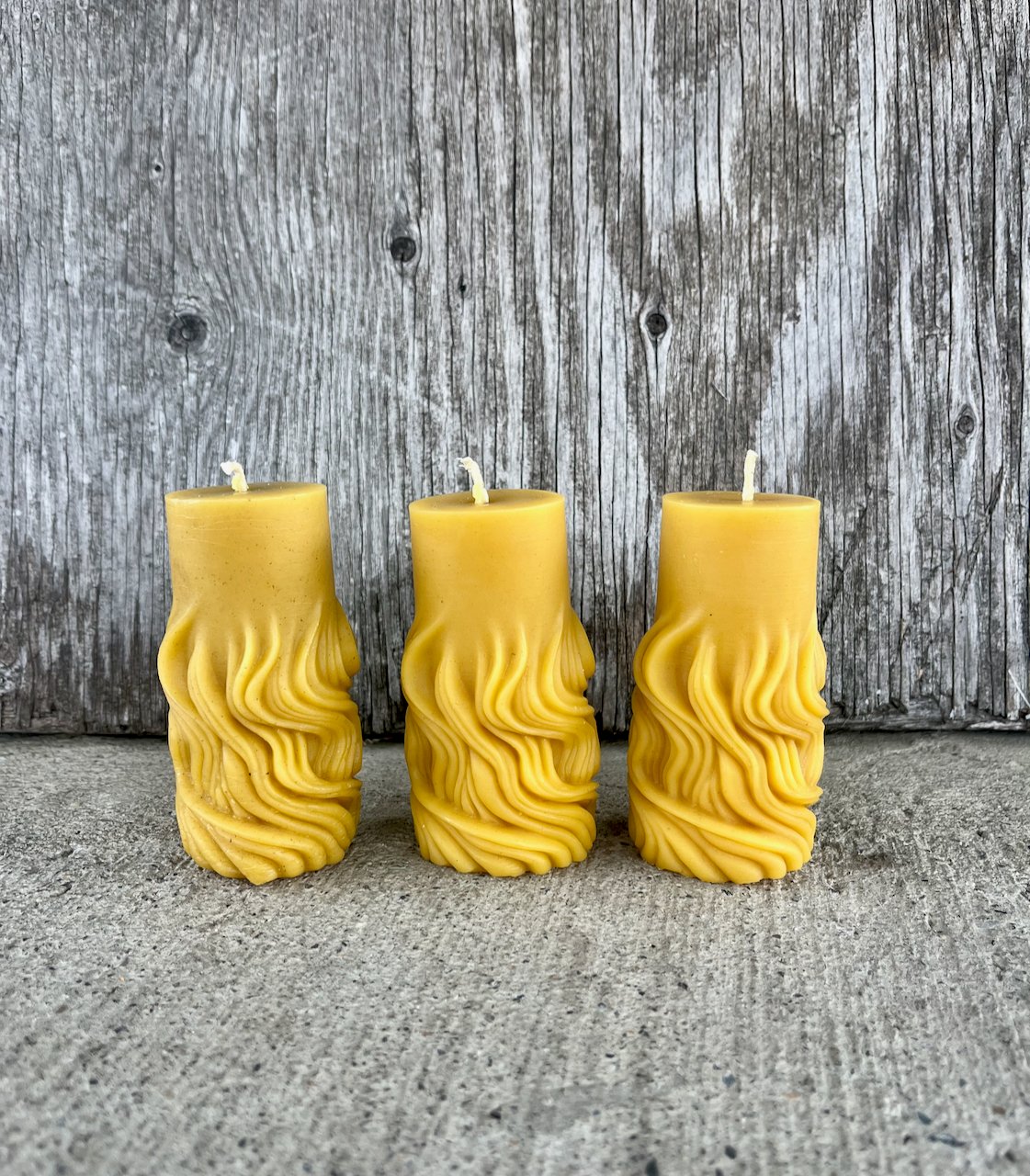 Small pillar candle made with beeswax from hives in Eastern Washington. This beeswax is collected and then processed and poured using heat from the wood stove during the cooler months. This candle makes a beautiful gift to yourself or others. Light your space in these dark months.